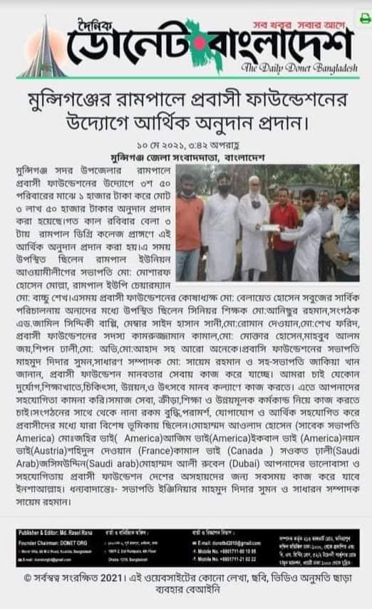 *প্রবাসী ফাউন্ডেশন রামপালের পক্ষ থেকে